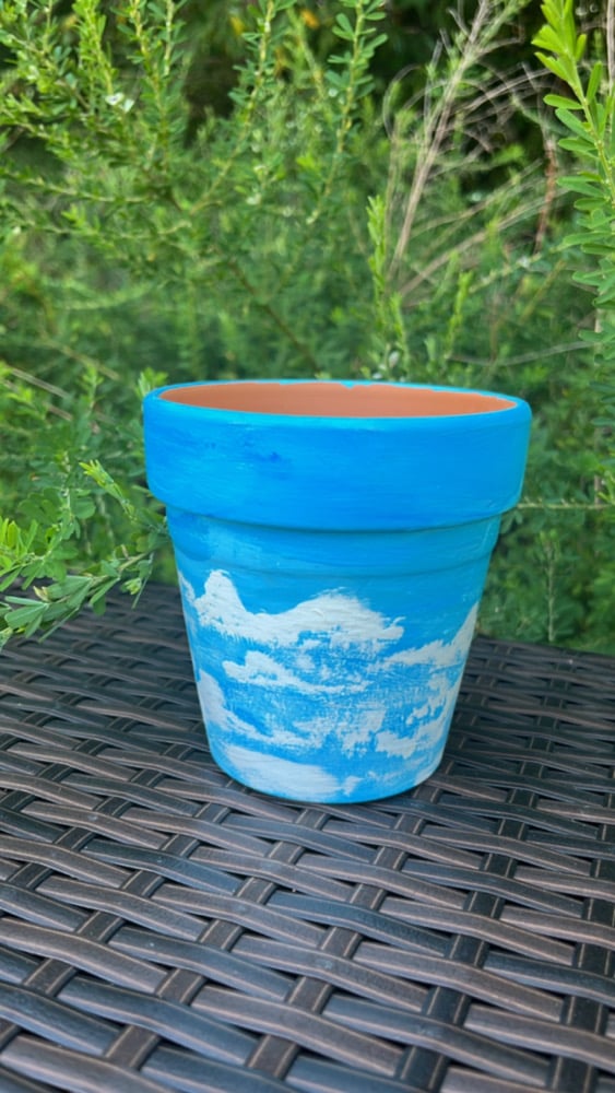 Give your plants a heavenly home! This flower pot is hand-painted with a unique, fluffy cloud design, making it the perfect piece to brighten any windowsill, desk or garden. 🪴